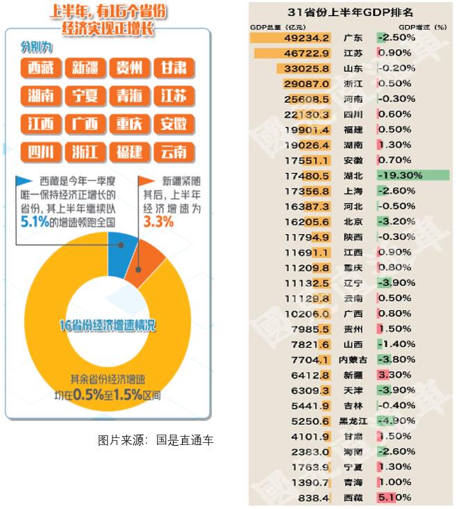 按省份来看,上半年31个省份中,gdp增速较一季度均显著回升。其中16个省份gdp实现正增长,15个省份gdp仍同比下降,但降幅收窄。