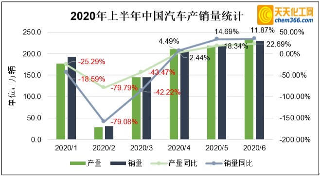2020年年初受疫情的影响,各大制造行业的发展频频受阻,而汽车行业作为国家支柱产业之一首当其冲。据中国汽车工业协会数据显示,在季度的三个月里,汽车产销量均呈负增长,尤其是在2月,同比下降分别达79.79%79.08%。进入第二季度,汽车行业出现回暖态势。4月,汽车产销量同比均有小幅上涨。5-6月,汽车市场景气指数持续上扬,汽车产销量同比上涨幅度均达两位数以上。6月汽车产量达232.5万辆,环比增长6.31%,同比增长22.69%;汽车销量达230.0万辆,环比增长4.83%,同比增长11.87%。汽车产销双双创本年度历史新高。同时,1-6月累计产量达1011.2万辆,同比下降16.62%;累计销量达1025.7万辆,同比下降16.74%,降幅持续收紧,总体超乎预期。