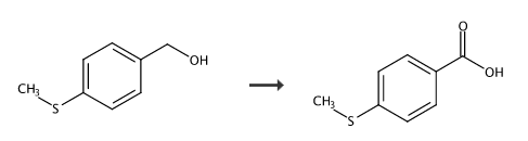 甲酸类化合物4-甲硫基甲酸广泛用于食品、医药、染料等化工领域,其也是一类重要的有机合成中间体。目前,已经有大量文献报道甲酸的合成方法,包括:液相氧化法,甲腈水解法,氯化水解法,邻二甲酸酐水解法,醇的氧化法等。液相氧化法是目前主要的生产甲酸的方法,通常在钴、锰等催化剂催化空气氧化制得,但是该类型反应单次转化率低,需要多次循环氧化反应,且反应的官能团耐受性有限。氯化水解法、甲腈、邻二甲酸酐水解法需要使用无机碱脱氢,反应结束后酸中和,产生大量的工业盐。此外,这些方法的通常存在官能团耐受性有限的缺点,因此很多含有敏感官能团(如巯基、氰基、酯基等)的甲酸不能通过以上方法之别。