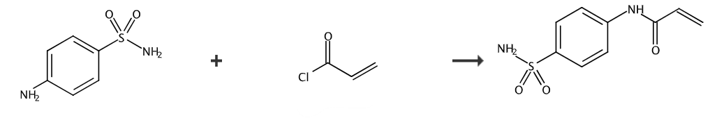 将磺胺(1.00g)和吡啶(1.41ml)加入到1,4-二恶烷(30ml)中。逐滴加入丙烯酰氯(0.49ml),并将溶液在室温搅拌3小时。加入1m hcl,溶液用萃取。萃取液用盐水和无水钠干燥,除去溶剂,得到纯度足以用于随后使用的粗产物。