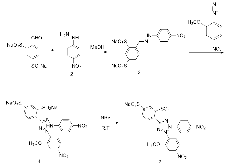 4)2-(2-甲氧基-4-硝基)-3-(4-硝基)-5-(2,4-二磺基)-2h-四氮唑单钠盐的制备