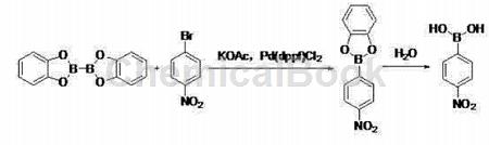 4-硝基硼酸是一种有机中间体,可由4‑硝基溴一步制备得到。