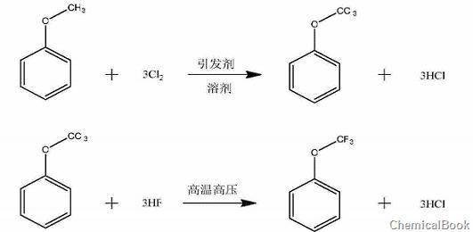 三氟甲氧基属于类衍生物,可应用于农药、医药和液晶中,用含氟有机化合物作原料合成的医药具有很多优点:如可以增强药品的药性、疗效高,并且无其它副作用,而且还具有持久性、口服性好的特点。近年来,该有机化合物已得到广泛应用。