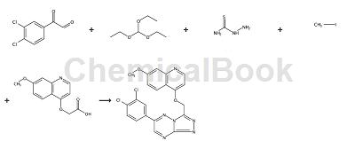 cn201010579221.0 报道了[1,2,4]三唑并[4,3‑b][1,2,4]三嗪类化合物、其药用盐、其前药及其水合物或溶剂合物,也涉及所述化合物的制备方法、包含所述化合物的药物组合物以及其作为蛋白酪氨酸激酶抑制剂,尤其是作为c‑met抑制剂,在制备预防和/或治疗c‑met异常相关疾病的药物中的用途。3,4-二氯乙二醛可用于制备这类化合物,如下图所示。