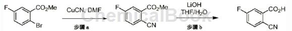 2-氰基-5-氟甲酸是一种有机中间体,可由2-溴-5-氟甲酸甲酯经过两步制备得到。