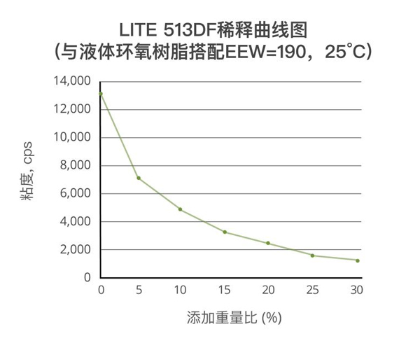 lite 513df是一款基于腰果壳油的新型高生物含量稀释剂,它的环氧当量比标准的513型号要低。这款产品适用于环氧涂料、单组分和双组分粘合剂以及复合材料。lite 513df粘度低,具有优异的稀释能力,与双酚a型液体环氧树脂的添加重量曲线如图所示。作为稀释剂,它在环境温度和低温下具有良好的硬度发展。与其他腰果壳油改性的材料类似,lite 513df具有良好的耐水性和柔韧性。在涂料应用中,lite 513df在长期盐雾试验中表现出非常好的防腐性能,请见本页面板的图片。在粘合剂应用中,这种环氧稀释剂还可作为改性剂,提高伸长率和粘结强度,同时将对tg和抗拉强度的影响降至低。