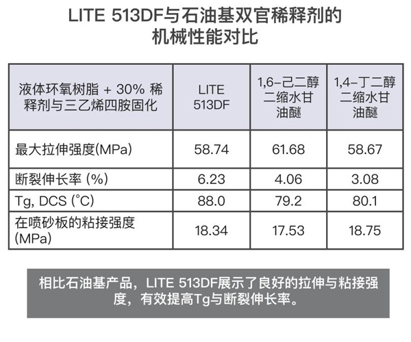 该材料是石油基双官能稀释剂(例如1,6己二醇二缩水甘油醚和1,4丁二醇二缩水缩水甘油醚)的极好替代品。