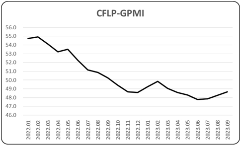 据中国物流与采购联合会发布,2023年9月份全球制造业pmi为48.7%,较上月上升0.4个百分点,连续3个月环比上升。分区域看,亚洲制造业pmi继续在50%以上小幅上升;美洲制造业pmi在50%以下连续3个月上升;非洲制造业pmi在50%以下有所下降,创出自今年4月以来新低;欧洲制造业pmi结束连续7个月环比下降走势,较上月有所上升,但仍在45%左右的较低水平。