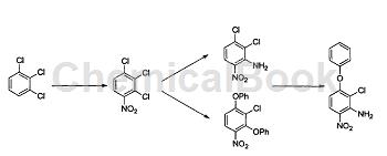 草醚主要是由1,2,3-三氯经三步反应得到,分别为硝化、胺化和醚化。