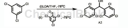 具体步骤如下:在氩气保护及零下78摄氏度条件下,向250ml单口烧瓶中加入9.5g(52.4mmol)1,3,5-三氯和100ml超干四氢呋喃。然后逐滴加入26.3ml(2m,52.6mmol)二异丙基氨基锂的四氢呋喃/正己烷溶液,在零下78摄氏度条件下搅拌30分钟。然后加入10.0g(47.7mmol)化合物2,4,6-三氯甲醛,在零下78摄氏度条件下继续搅拌2小时。然后将反应体系缓慢升至室温,加入200ml饱和氯化铵溶液淬灭反应,并用萃取三次,每次25ml。合并有机层,用25ml碳酸氢钠溶液洗涤,并用无水钠干燥。将溶剂蒸干后,用二氯甲烷:石油醚=1:2(体积比)作为洗脱剂,通过柱层析提纯,得到17.5g产物a2,产率94%。