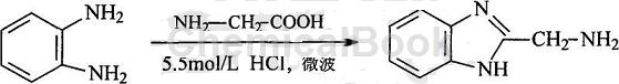 2-氨甲基并咪唑合成方法是以邻二胺和甘氨酸为原料,hcl做催化剂,采用微波间歇辐照进行缩合反应一步生成2-氨甲基并咪唑。2-氨甲基并咪唑进一步与盐酸反应生成2-(胺甲基)并咪唑二盐酸盐其反应方程式如下:
