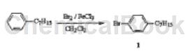 具体步骤如下:将基庚烷(100g,0.57mol)溶解在900ml氯仿中,并加入氯化铁(1.41g,9mmol)。将混合物冷却至0℃并通过另外的漏斗滴加溴(32ml,0.62mmol)。将反应保持在黑暗中以防止脂族侧链的溴化。在室温下搅拌过夜后,用1nkoh淬灭反应。萃取后,有机相用水洗涤,用mgso4干燥。粗产物为棕色油状物,通过硅胶柱色谱纯化,用庚烷作为洗脱剂,得到60g纯产物4-正庚基溴,为淡黄色油状物,42℃。%让。1hnmr(cdcl3)δ(ppm):0.88(t,j=6.9hz,3h),1.26-1.31(m,8h),1.54-1.59(m,2h),2.54(t,j=7.8hz,2h),7.04(d,j=8.2hz,2h),7.38(d,j=8.2hz,2h)。fd-ms:m/z255(m+)。