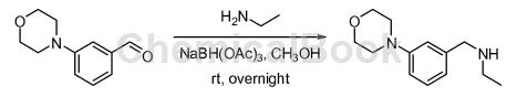 向250ml圆底烧瓶中加入3-吗啉基甲醛(4.58g,23.9mmol,1.00当量),乙胺(5.39g,120mmol,5.00当量),甲醇(100ml)。将所得溶液在室温下搅拌2小时。加入三乙酰氧基硼氢化钠(15.2g,72.0mmol,3.00当量)。将所得溶液在室温下搅拌过夜,并用水(50ml)淬灭。用二氯甲烷(3×100ml)萃取所得溶液,合并有机层,用盐水(3×100ml)洗涤,用无水钠干燥,过滤,并减压浓缩。将残余物在硅胶柱上用/石油醚(5/1)进行色谱分离,得到n-(3-吗啉代苄基)乙胺(4.00g,75%收率),为黄色固体。