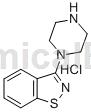 3-(1-哌嗪基)-1,2-并异噻唑盐酸盐的制备如下:将双(2-氰基基)二硫化物(20.0g,74.5mmol),无水哌嗪(64.2g,745mmol),二甲基亚砜(12.8g,164mmol)和异丙醇(24ml)加入到500ml圆底烧瓶中配备机械搅拌器,温度计,顶部有氮气入口的冷凝器和通向漂白洗涤器的连接器。在用氮气吹扫烧瓶后,将反应物熔化(在约80℃下),然后加热至回流(110-126℃)。