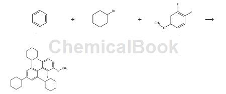 装有磁力搅拌棒的烘箱干燥的500ml三颈圆底烧瓶中装有镁屑(1.17g,48.0mmol)和2,4,6-三环己基溴(16.0g,40.0mmol),并配有回流冷凝器,玻璃塞和橡胶隔膜。用氩气吹扫烧瓶,然后通过注射器加入thf(60ml)。将反应混合物加热至回流,然后通过注射器小心地加入1,2-二溴甲烷(40μl)。将反应混合物在回流下搅拌1.5小时,然后将其冷却至室温。将装有磁力搅拌棒并装有橡胶隔膜的单独烘箱干燥的2l圆底烧瓶用氩气吹扫,然后thf(200ml)和2-氟-4-甲氧基-1-甲基(2.8g,按照报道的方案合成的20.0mmol)通过注射器加入。