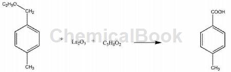 现有合成方法大多采用浓硝酸氧化对,反应30h,可制得对甲基甲酸,收率为58%。这种合成方法由于需要采用浓硝酸做反应物,合成过程中危险系数较高,对设备的耐腐蚀较高,设备维护成本较高,不利于降低整体生产成本,而且合成过程需要30小时以上,生产时间太久,终收率也并不高,只有58%左右,因此有必要提出一种新的合成方法。