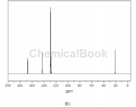 本方法提供的止血芳酸药物中间体对甲基甲酸的合成方法,不需要采用浓硝酸做反应物,降低了合成过程中的危险系数,对设备的耐腐蚀要求降低了,减少了设备维护成本,有利于降低整体生产成本,合成过程只需要几个小时,生产时间加快了,反应中间环节减少了很多,反应时间也缩短不少,反应收率也提高了,同时本发明提供了一种新的合成路线,为进一步提升反应收率打下了良好的基础。图1是成品对甲基甲酸的13cnmr分析谱图。