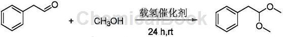 具体步骤如下:向一个装有搅拌器和温度计的四口烧瓶中依次加入乙醛(0.2mol,24g),载氢催化剂acrh 0.26g,甲醇100ml,在常温下搅拌反应24h;反应结束后,先蒸馏回收过量的甲醇,减压蒸馏得到具有淡雅香味的淡黄色液体乙醛二甲缩醛27.2g,收率82%。