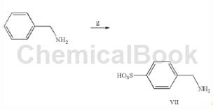 方法2:在535.8份5%的发烟中(用401.9份的96%和133.9份的31.9%的发烟进行调整),同时保持液温在40°c或更低,苄胺107.1份一小时内逐滴添加。逐滴添加后,将温度升至120℃,并且反应在相同温度下进行1小时。反应完成后,将反应混合物冷却至30°c,缓慢倒入500份冰水中,通过过滤分离沉淀的晶体,并用200份冷水和150份甲醇洗涤,得到116.2份白色湿饼。将得到的湿饼在80℃下干燥,从而获得57.8份4-(氨基甲基)-1-磺酸。