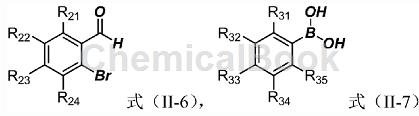 具体步骤为:在100ml茄型瓶中,加入式(ii-6)所示的邻溴甲醛(4mmol),再加入乙腈12ml,搅拌下依次加入式(ii-7)所示的硼酸(6mmol)、氟化钾(10.4mmol)、二(三基膦)二氯化钯(28mg),再加水4ml,加热回流。待溶液由黄色变红黑色时,tlc点板监测反应是否完全,反应若完全,则冷却后用硅藻土过滤,直接硅胶拌样过柱,得无色或偏黄固体,产率基本保持在85%左右。
