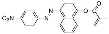 当偶氮聚合物中含有柔性分子链(如,烷基链),偶氮分子通过共价键作用连接到分子链中,偶氮分子可以表现出液晶性质。用适当波长的光照射偶氮聚合物时,这类柔性材料会表现出光控性能,如光诱导取向,光化学转变以及光诱导的分子协同运动。目前,已经有很多通过共价接枝的方法制备偶氮液晶聚合物的方法,这类偶氮聚合物具光驱动性(如,uv光,蓝-绿光,偏振光等),其主链中通常含有硅氧烷类、乙烯类、丙烯酸类等柔性分子链。偶氮聚合物的光响应性是由柔性链段和偶氮链段共同决定的。4-(4-硝基偶氮)-1-萘酚可用于合成偶氮聚合物,尤其是甲基丙烯酸甲酯类偶氮聚合物。