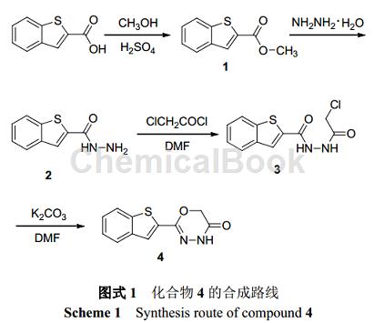 可用于合成2-取代-1,3,4-噁二嗪酮类化合物-化合物4。此类化合物具有良好的除草活性, 特别是对马唐(digitaria sanguinalis)和苋菜(ambrosia tricolor linn)有较高活性。