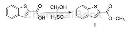 将 14.25 g (80 mmol)吲哚-2-甲酸溶于 500 ml 甲醇中, 加入 2 ml 浓, 75 ℃下回流反应 24 h, tlc (5%水-乙腈)监测反应进程. 反应结束后, 减压蒸除大部分溶剂, 溶液于 0 ℃下冷却静置约 10 h, 析出针状晶体,过滤得并噻吩-2-甲酸甲酯(1) 15.36 g, 收率 93%.