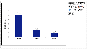挥发性比dop低50%以上。加工时,可减少增塑剂的损失,降低挥发性有机物的散失量。重要的是,在终产品中,降低挥发性可减少汽车挡风玻璃上的雾气沉积。