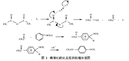 以碘为催化剂, 由甲醚与酐进行酰基化反应合成对甲氧基乙酮。