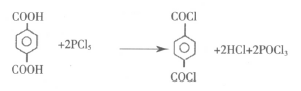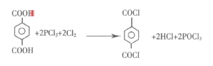 因五氯化磷是固体,加料困难,同时对二甲酸也是固体,二者很难混合均匀,而且五氯化磷易吸收空气中的水分而放出氯化氢, 不但影响操作工人的健康,也影响投料比例。