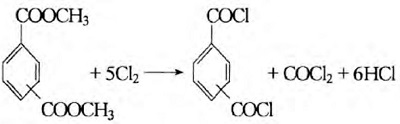 以对二甲酸二甲酯为原料,甲醚或氯为溶剂,通入氯气与酯反应合成酰氯,反应过程如下: