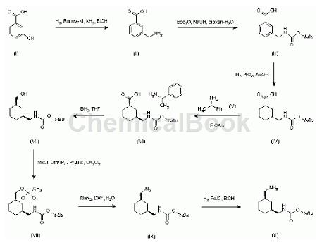 由于 ss普遍的生理学功能,而且与诸多肿瘤疾病的发生、发展及治疗有着密切关系,究者对其医学应用价值备受关注。美国 merck 公司合成的新药 l-779976和 合成的新药 l-054264都是人工制得生长抑素,可应用于治疗消化道肿瘤疾病。这两种新药的合成起始原料都是 3-氰基甲酸。美国 merck 公司每年都有通过第三方采购部分 3-氰基甲酸供临床研究之用。以新药 l-054264 为例,合成路线图如下: