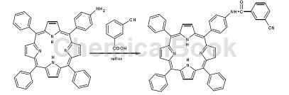 将 3-氰基甲酸连接到卟啉环上,得到 5-( 4- 3-氰基甲酸酰亚胺基) 基-10,15, 20-三基卟啉配体(cbtpph2),这种新型配体具有活性叠加,是重要的功能性材料。它的合成路线路如下: