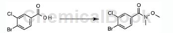向搅拌的4-溴-3-氯甲酸(5.0g,21.2mmol)的二氯甲烷(50ml)溶液中加入n-甲氧基甲胺(1.43g,23.34mmol),1-乙基-3-(3-二甲基氨基丙基)碳二亚胺(4.16g,25.48mmol),7-氮杂-1-羟基并三唑(590mg,4.25mmol)和n-乙基二异丙胺(7.42ml,42.5mmol)。 然后使混合物在室温下反应过夜。 加入100ml和100ml水。用饱和碳酸氢钠溶液(50ml)洗涤有机相一次。然后将有机相减压浓缩。通过快速色谱法纯化粗产物,得到5.91g 4-溴-3-氯-n-甲氧基-n-甲基-甲酰胺。