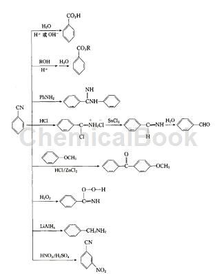 甲腈亦称“氰基”,具有苦杏仁挥发油味的液体。与乙醇、混溶,溶于丙酮、,100℃时1g溶于100ml水。甲腈具有广阔的应用领域,其大用途是它与双氰胺反应制成的代三聚氰胺可用于金属涂料、塑料、荧光颜料、成型材料等,甲腈还可用做有机合成、油漆、印刷油墨和树脂的高沸点溶剂,以及作为喷气发动机燃料的添加剂、合成纤维助燃剂。市场需求量正在逐年增加。参与的反应主要为氰基的反应: