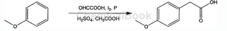 对甲氧基(4-methoxyphenylacetic acid),通常为白色片状晶体,熔点为84-86℃,易溶于热水、、乙醇、等,可溶于冷水。对甲氧基是合成新一代抗抑郁药文发拉新(venlafaxine)的中间体,也是合成葛根素、异黄酮类等多种心血管药物的关键性中间体。关于它的合成方法,国内外的报道主要有以下几种:a)氰化法,一般用对甲氧基苄氯和氰化钠反应生成对甲氧基乙腈,后者经水解得到对甲氧基,这种方法要使用剧毒的氰化物,因而存在严重的安全隐患;b)乙酮重排法,该法常以对甲氧基乙酮原料,与硫磺和六水哌嗪反应,经过重排及水解得到对甲氧基,但该法生成的硫化氢剧毒奇臭,收率也不高;c)羰基合成法,该法以对甲氧基氯苄为原料,在催化剂作用下,与co 反应生成对甲氧基,这种方法的缺点是所使用的催化剂价格昂贵,co 危害性也较大。