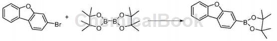 3-溴二并呋喃(4.8g,19.4mmol),双频那醇二硼烷(6.5g,25.5mmol),koac (7.7g,78mmol),100ml二氧六环加入反应瓶中,通氮气10分钟,加入pd(dppf)2cl2(160mg, 0.02mmol),再通氮气10分钟,加热至80℃过夜约20小时,自然冷却至室温,过滤,滤液用水 洗,用提取,有机层用无水钠干燥,过滤,滤液旋干,得棕色固体,过柱子,得到 5.1g固体。