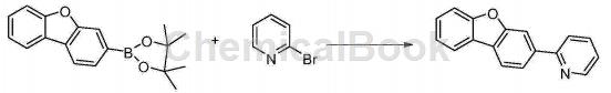 二并呋喃频那醇硼酸酯(11.8g,40mmol),2-溴吡啶(5.8ml,60mmol),碳酸钠 (10.2g,96mmol),四(三基膦)钯(0.5g,0.4mmol),,乙醇,水各50ml依次加入反应瓶 中,氮气保护下回流反应10小时,冷却至室温,分液,水层用ea提取,合并有机层,分别用饱 和食盐水和水洗,有机层用镁干燥,过滤,滤液旋干,过硅胶柱,洗脱剂比例石油醚:乙 酸乙酯=20:1,得到8.7g产物,hplc纯度99.0%。