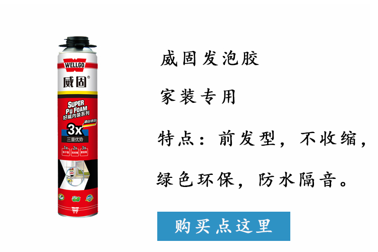 1、发泡胶顾名思义就是一种具有发泡特性和粘结特性的胶,它主要用于建筑门窗边缝、伸缩缝及孔洞处的填充、密封、粘结,是一种湿气固化的聚氨酯弹性密封发泡材料。发泡胶是将聚氨酯预聚体﹑发泡剂﹑催化剂、交联剂等填装到耐高压铁罐中,并填装丙烷等气体。它分枪式和管式两种,枪式需要专用的发泡胶枪才能使用,管式配有一次性的胶管。