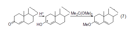 烯醇醚 用2,2-二甲氧基丙烷/dmf/ tsoh处理睾丸激素,使这种物质转化成烯酮醚 (式7)[5]。