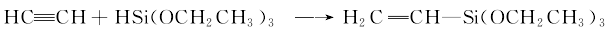 3.以三乙氧基氢硅和乙炔为原料,在二氯双三基磷和铂盐的催化作用下,一步加成制得产物。反应温度为90~130℃,合成反应式如下:![]()