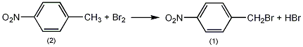 于装有搅拌器、温度计、回流冷凝器(连一导气管吸收溴化氢)、滴液漏斗的反应瓶中,加入对硝基(2)150g(1.1mol),搅拌下油浴加热至145~150℃,慢慢滴加溴素184g(1.15mol),2h加完。加完后继续反应10min。稍冷后倒入热的石油醚(80~100℃)2l中,加入活性炭,回流10min。趁热过滤,冷至20℃左右,滤出结晶,石油醚洗涤,干燥,得粗品对硝基苄基溴(1)150g,mp95~97℃。石油醚中重结晶,mp98~99℃,产量135g,收率57%。[13]