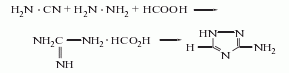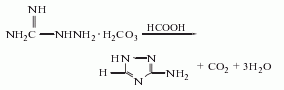 2.氨基氰肼法 由氨基氰、水合肼及甲酸反应制得。其反应式如下: