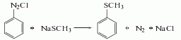 2.胺法 由胺重氮化制得重氮盐;再与甲硫醇钠反应制得,后一步反应式如下: