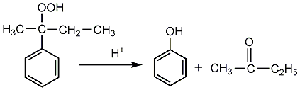 然后在酸催化剂存在下分解,于20~60℃提浓氧化液,生成丁酮和酚,后分离精制而得成品。