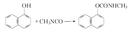 (1)热法:将光气预热至90℃左右,甲胺预热至220℃,按摩尔比1:3:1调节流量进行酰氯化合成反应,该合成器上部温度控制在340~360℃,下部温度控制在240~280℃。控制反应气缓冲出口压力在0.1兆帕以下,酰氯受器和冷凝器夹套水温应严格控制。得到的甲氨基甲酰氯平均含量90%以上,收率83%以上。将甲萘酚和甲氨基甲酰氯以1:1.2的摩尔比投入缩合釜,搅拌反应。工艺过程可采用先将甲氨基甲酰氯溶于四氯化碳、氯、或其他溶剂中,再与甲萘酚反应;也可将其配的5%甲萘酚钠水溶液、3%氢氧化钠溶液及甲氨基甲酰氯溶液投入缩合釜,温度控制在10~15℃、ph8~11下连续反应,溢出的反应物经离心分离、水洗、干燥得甲萘威。