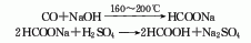 1.甲酸钠法 一氧化碳和氢氧化钠溶液在160-200℃和2mpa压力下反应生成甲酸钠,然后经酸解、蒸馏即得成品。