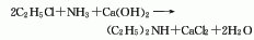 2.氯乙烷与氨(氨水)在氢氧化钙水溶液中,于压力2.26mpa,温度135℃左右反应6h,然后加入氢氧化钠破坏二乙胺氯化钙复盐的生成,后经蒸馏、精馏,切取55-57℃馏分为二乙胺成品,含量达98%以上,收率80%,同时可得少量三乙胺。