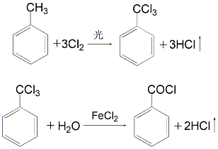 ② 将加入氯化釜,在光照下通入氯气进行反应制得三氯,再在酸性介质中水解而制得甲酰氯。