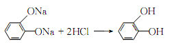 反应液放置15~20h后,加入醋酸中和过量碱,然后减压蒸发至干。固体粉碎后加入一定量,加热至沸进行反复提取,每次冷却析出的邻二酚合并后 进 行 减 压 蒸 馏,压 力 控 制 在1333pa ,收集119~121℃馏份,再用5倍的重结晶,即可得邻二酚产品。